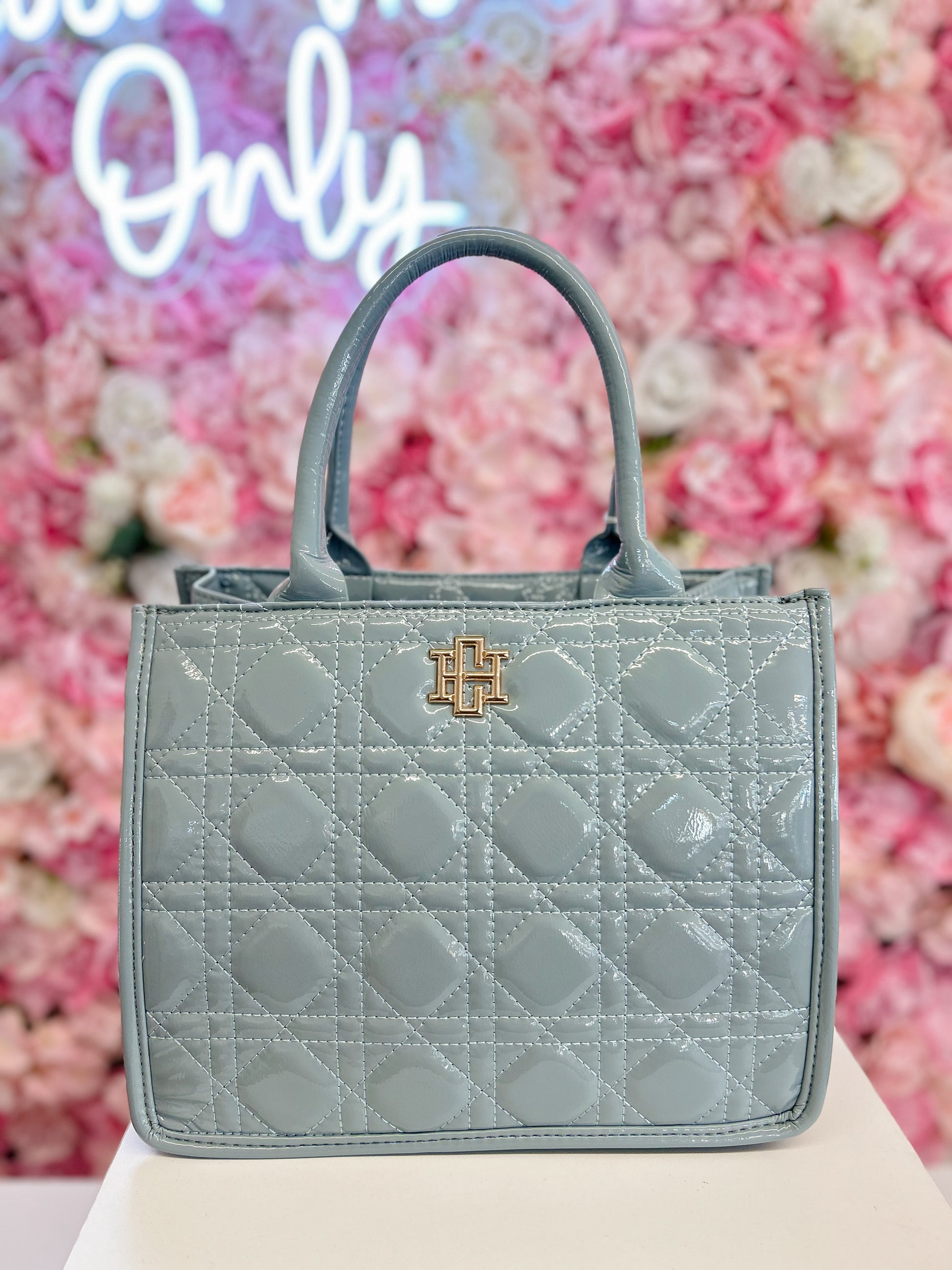 Caroline Hill Ricky Mini Tote Dusty Blue Patent