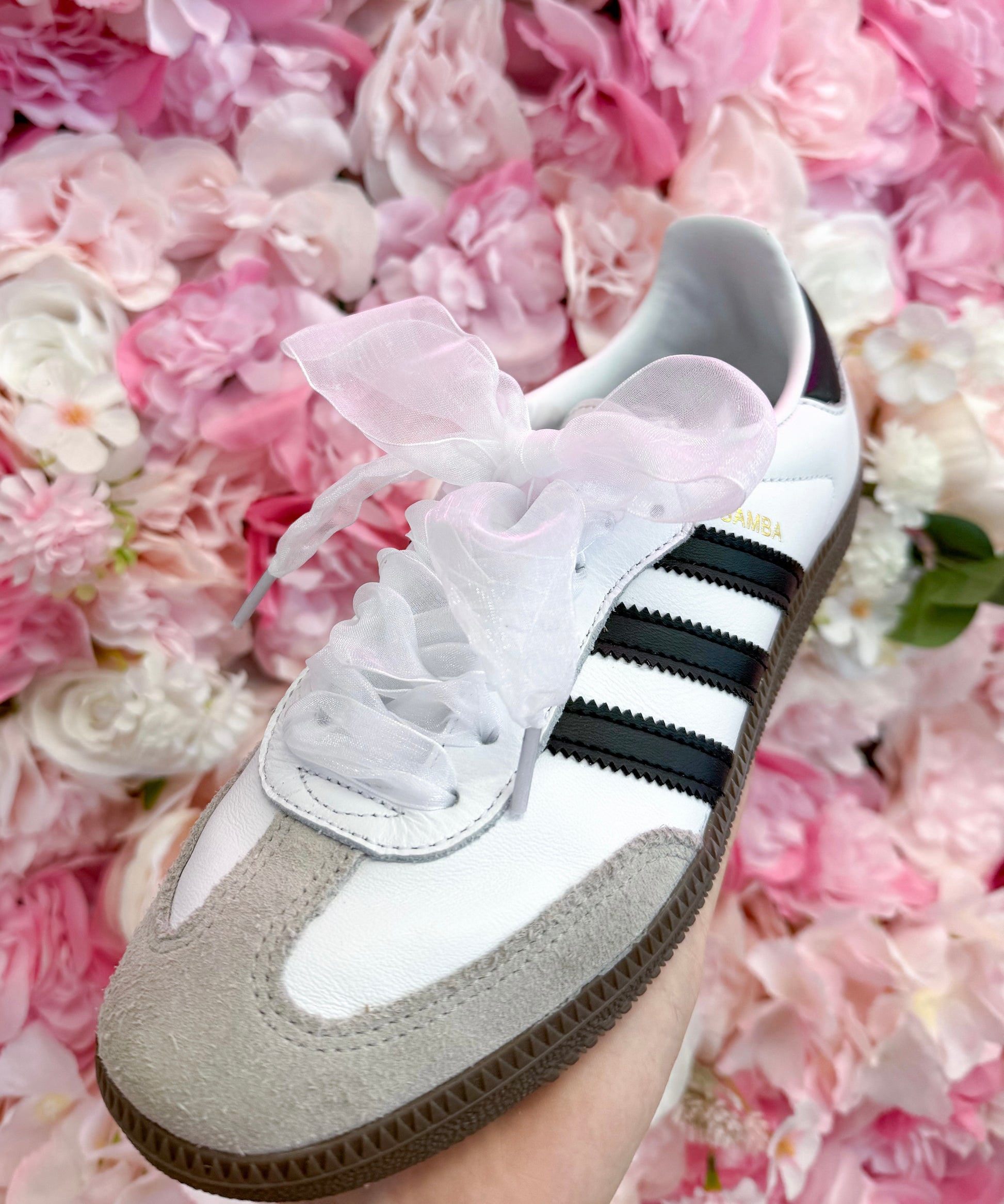 Add a touch of elegance and personality to your footwear with these satin organza laces. Perfect for stepping up your shoe game, these stylish laces replace ordinary ones with a soft, shimmering fabric that elevates any look. These ones are crafted from satin organza.